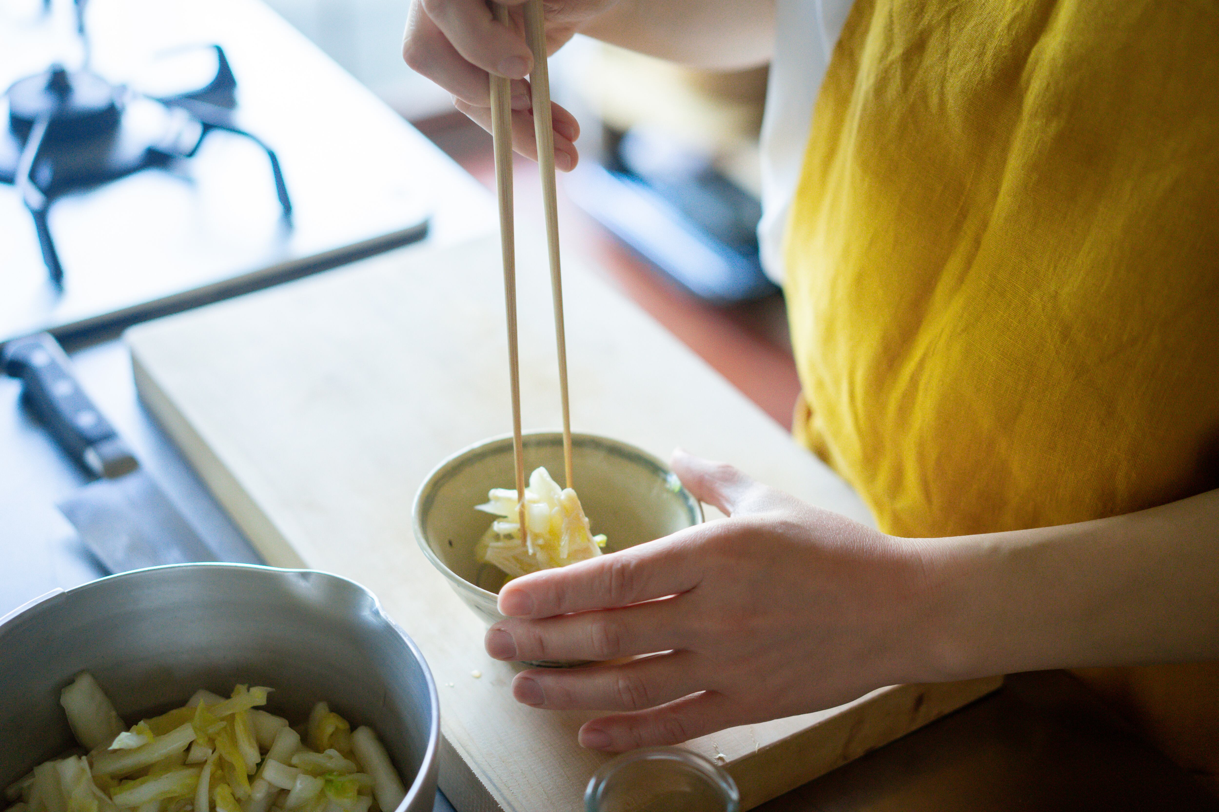 いつもフライパンからざっと盛り付けている料理も、盛り付け箸を使ってお皿によそうと、自分自身のことをぎゅーっとハグしてあげているような。